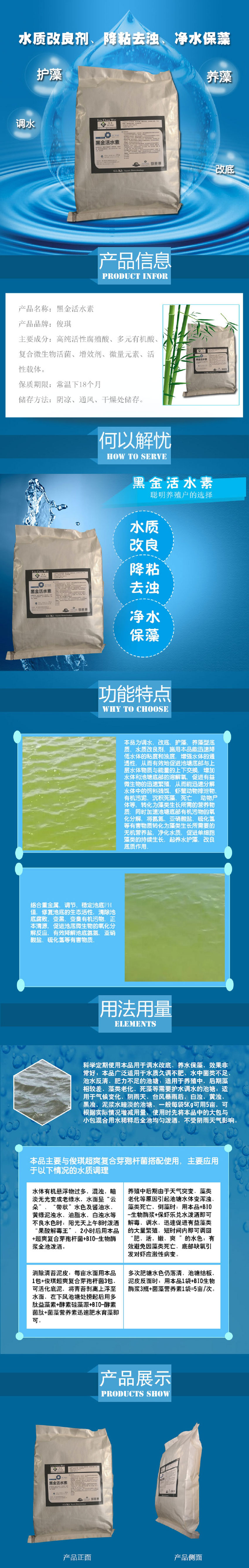 【主要成份】高纯腐殖酸、复合有机酸、酵素活性物、生物降解分裂素、PH值平衡剂、藻类细胞分裂素、水体修
